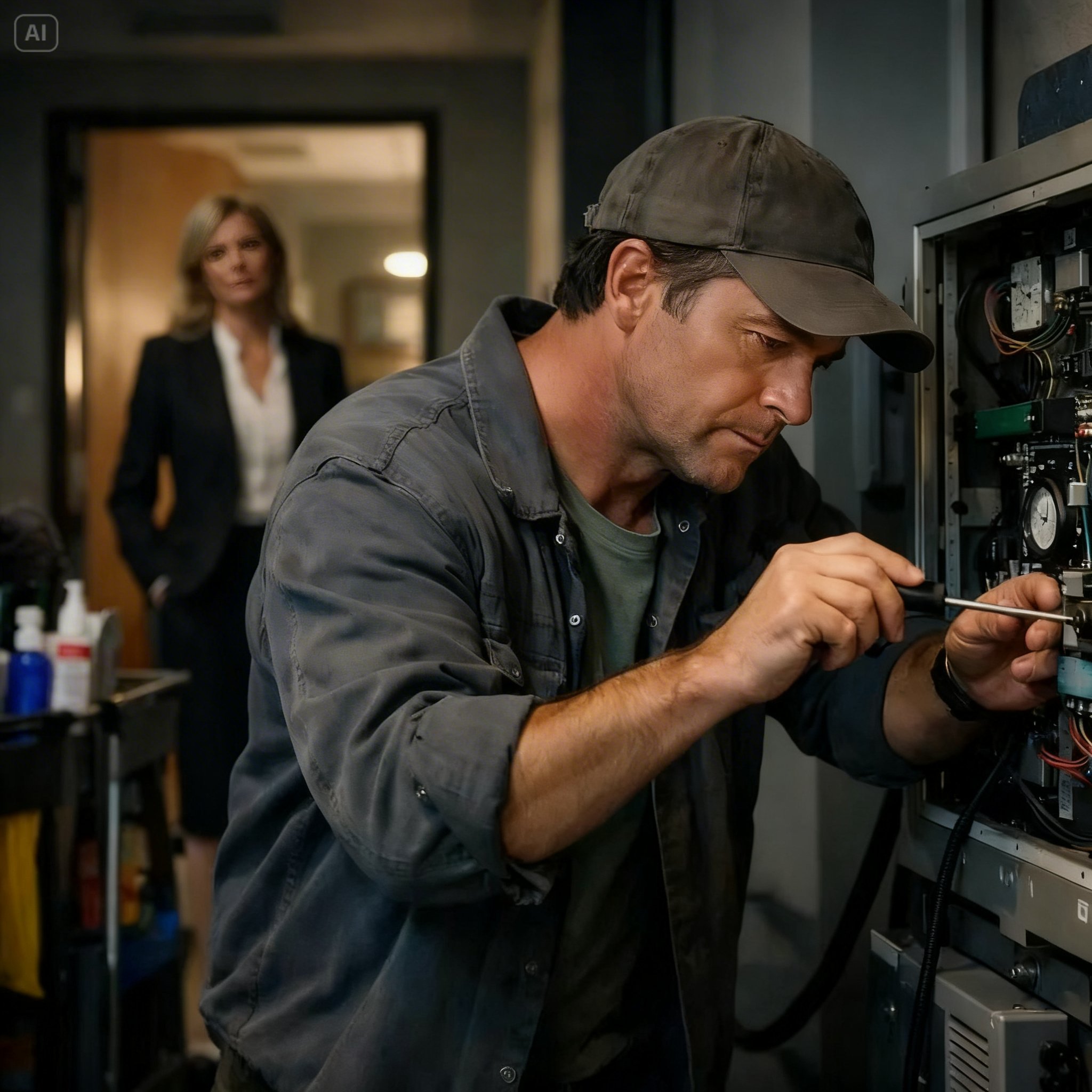 She watched it alone with her office door closed. The first time through, she observed. The second time, she studied. The third time, she confirmed what she already suspected. The man in gray coveralls did not move like someone improvising. He did not hesitate like someone trespassing into a world above his understanding. He sat at the diagnostic terminal with the economy of a person who knew exactly what he was looking for, exactly what he had found, and exactly how much intervention was required. There was no flourish, no panic, no visible uncertainty. Then the board turned green.